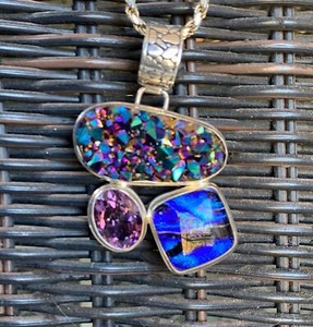 Reversible SS 925 MOP Shell Pendant & Findings w/ Art Glass Beaded Necklace 22“ S$ 39.78Was: S$ 56.83