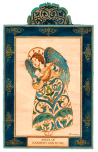 ANGEL OF HARMONY AND MUSIC HANDCRAFTED WOOD POCKET RETABLO - A6