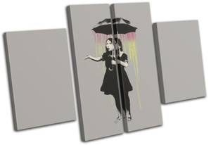 Girl Umbrella Rain Street Banksy Street MULTI CANVAS WALL ART Picture Print