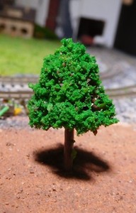 Angeboten werden Modellbau-Bäume und Modellbau-Laternen sowie Güterwagen der KBE, Köln-Bonner-Eisenbahn in Spur N