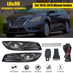 Black Right&Left Fog Light For 2013-2015 Nissan Sentra W/Switch Clear Glass Kit