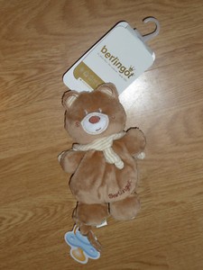 Doudou bleu Ours Bear bär Oscar plat nouky Noukies Noukie's attache tétine train
