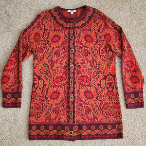 CAbi Blouse Colorful Plaid Cirque with Roll Tab Sleeves in Size M