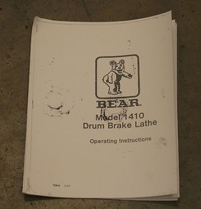 Bear 1410, FMC, Drum Doktor & John Bean Drum Brake Lathe Operating Manual