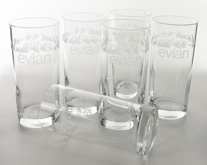 6 x Evian Mineralwasserglas gefrostetes Logo Gläser Erfrischungsgetränk 3260