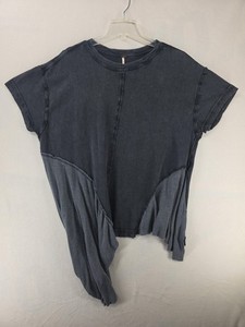 Free People Shirt Womens Small Charcoal Mixed Media Asymmetrical Ruffle Hem Boho