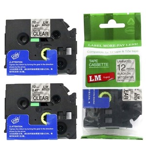 2/Pack 12mm Black on Matte Clear for P-touch Model PT9600, PT-9600 Label Maker
