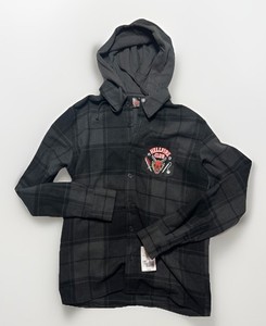 Stranger Things Hooded Flannel Shirt Shacked Men Sm Gray Plaid Hellfire Club NWT