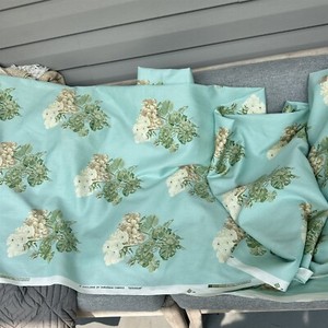 Vintage Suburban Fabric Geranium Pattern Light Blue With Cream Beige Flowers