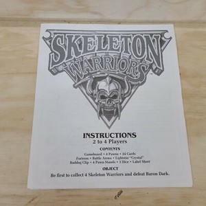 Skeleton Warrior Milton Bradley Board Game Replacement Instruction Manual