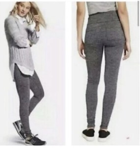 Athleta Medium Pull On Leggings Metro Pants Herringbone Pattern Gray Pockets