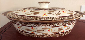 Temptations by Tara Old World BROWN 2 QT Oval Casserole Dish w/ Lid 13.5 in