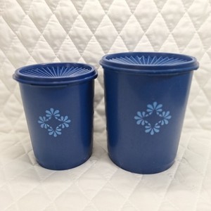 Tupperware Blue Cannisters Servalier Set Of 2 Nesting Stacking Flower Cottage