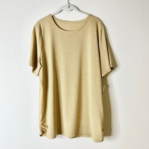 Talbots Top Women 1X Gold Metallic Tunic Tee Ruched Classic Boho Lagenlook NWT