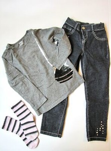 Gymboree Girls 2010 Sugarplum Sparkle Set Sequin Jeans Gray Top Socks 3 4 years