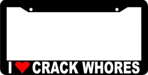 I LOVE CRACK WHORES prank rude funny License Plate Frame