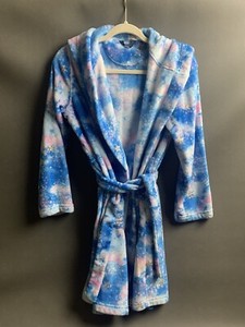 Lands End Tie Dye Blue Pink Metallic Star Robe Housecoat, Girls SZ 14