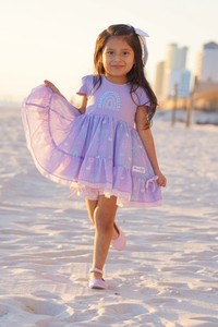 NWT Always in Bloom Girls Boutique Rainbow Lavender Pink Aqua Dress size 10