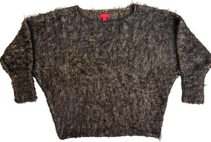 Jennifer Lopez Fuzzy Sweater Womens Size M Black Metallic Threads Dolman Sleeves