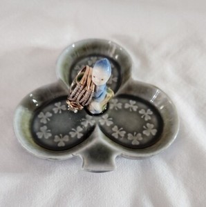 Irish Fairy Ring Dish Blue Green Irish Pottery Clover Shaped Trinket Ireland 6A