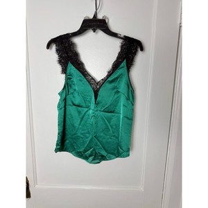 SHEIN Women's Green Satin Black Lace Cami Tank Top Small Whimsygoth Indie