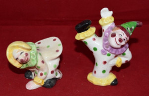 Vintage Polka Dot Whimsical Clown Salt & Pepper Shakers Set