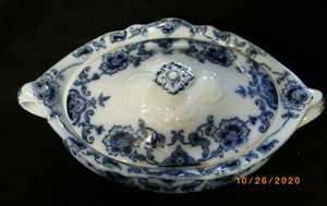 Flow Blue Covered Vegetable Serving Dish PERSIAN by Hollinshead & Kirkham