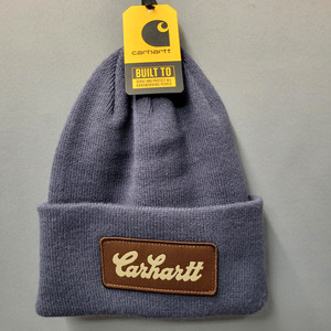 Carhartt Hat Beanie Cuffed Knit Gray & Blue Patch Logo One Size Mens New
