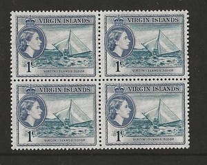 BRITISH VIRGIN ISLANDS, QE11 1956 1c SG 150 IN MNH BLOCK 4, CAT £6