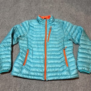 Marmot Jacket Womens Large Blue Mock Neck Full Zip Pockets Puffer Down Outdoor