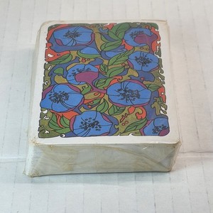 Vintage All Plastic Playing Cards Deck Blue Floral Art Nouveau Design Sealed USA