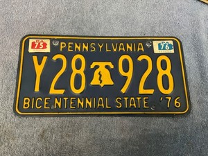 Pennsylvania License Plate Bicentennial State 1976 w/ 1975 & 76 Sticker Y28-928