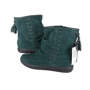 Hotter Size UK 6.5 EXF Wide Pixie Green Suede Fur Lined Ankle Boots Tassels NWOB