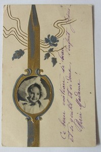 Cartolina d'epoca rilievo Bambina - postcard - cpa -1905