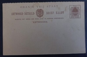 Undated Orange Free State 1d Stamped Reply Card Unused