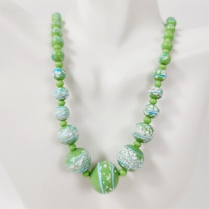 Vintage Green Hand Painted Graduated Ceramic Beaded Necklace