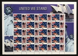 AUSTRALIA UNITED WE STAND 911 STAMPS SHEET 20V MNH 2000 TWIN TOWERS PENTAGON PA