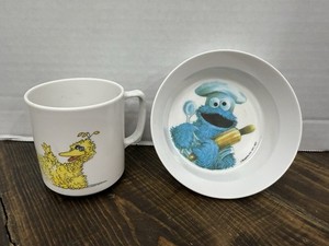Vintage 1977 Sesame Street Cookie Monster Melamine Cereal Bowl Big Bird Cup Mug