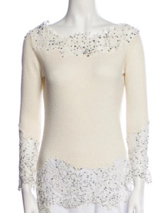 Auth New VALENTINO Ivory SWEATER Top with LACE and CRYSTAL Accents