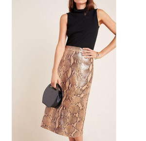 Anthropologie Snake Print Faux Leather Pencil Skirt 12 Brown Knee Length Vegan