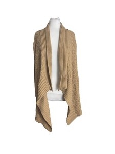 Chicos Womens Size 2 Large Tan Open Front Cardigan Fountain Cable Knit Draped
