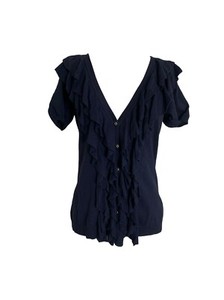 Charlotte Russe Womens Cardigan Sweater Size Medium Navy Blue Ruffle Front