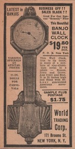 1931 Vintage WORLD TRADE CORP Banjo Wall Clock Carnival Fair Print Ad