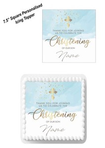 PERSONALISED Cake Topper Christening BOY Edible Icing 7-8" SQUARE Decoration