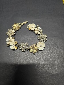 Vintage Napier Rhinestone Floral Bee Butterfly 7.5 Bracelet FLAW