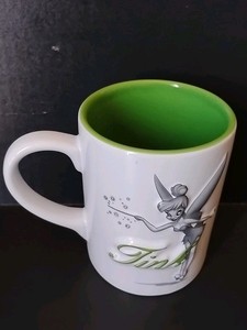 Disney Tink Coffee Mug Tinkerbell 3D Embossed White Green Gray 16 oz