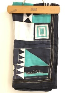 Ulla Sohn Handpainted Designer Scarf Abstract Modern Black Green White Gold