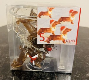 Dachshund With Santa Hat Christmas String Lights 5 Ft. Lights Battery Operated