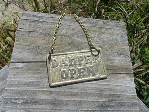 Vintage Solid Brass Fireplace Damper Sign – “Damper Closed” w Hanging Chain