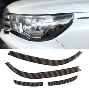 Carbon Fiber Front Headlight Eyelids Eyebrow Cover For T@yota Hilux Revo 2015-21
